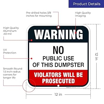 Amazonダンピングサインなし、ゴミ箱サインを公的に使用しない、違反者は起訴されます、12x12 正方形錆防止アルミニウム、耐候 色あせ防止、取り付け簡単、屋内 屋外での使用、Sigo Signs製標識・サイン文房具・オフィス用品。