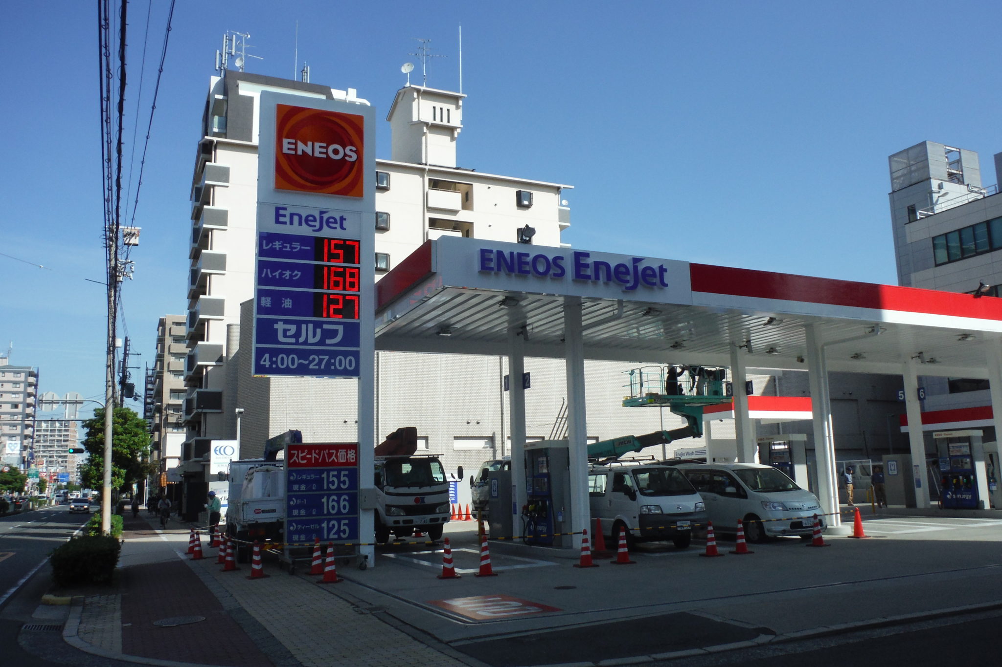 ニュース: 日本 ガソリンスタンド ENEOS看板アクリライト三菱ケミカル株式会社。