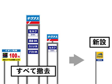 ENEOS」ガソリンスタンドロゴ変更工事 - タケダ工芸株式会社。