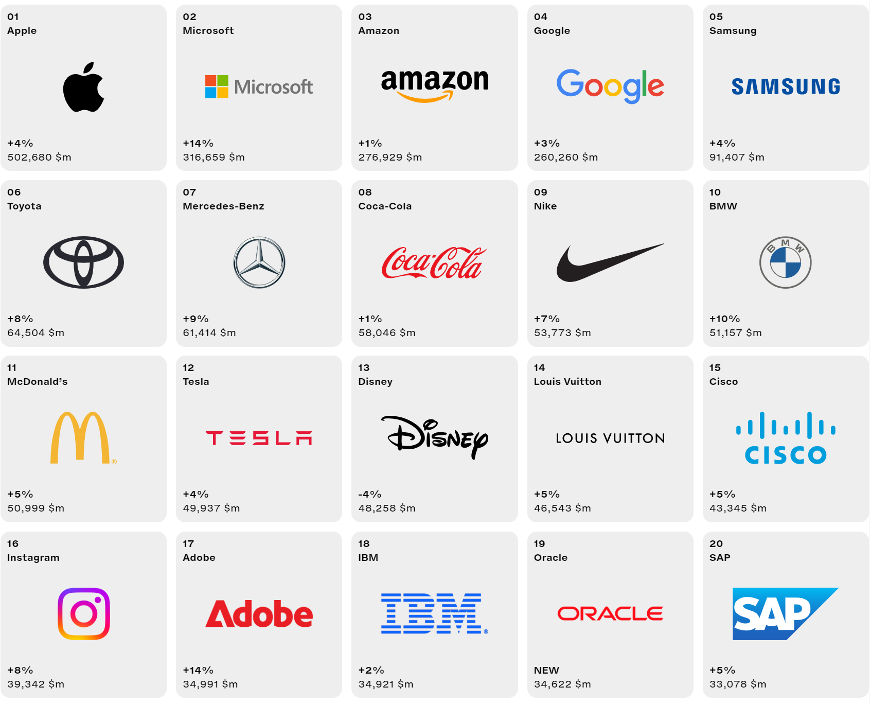 世界のブランドランキングTOP100、Appleが11年連続で1位。日本からはトヨタやソニーがランクイン インターブランド調べWeb担当者Forum。