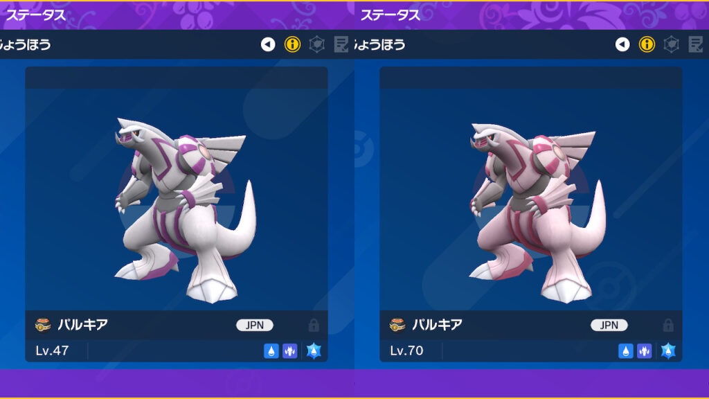 図鑑No.484 『パルキア』の色違いの見分け方をソフト別に解説。