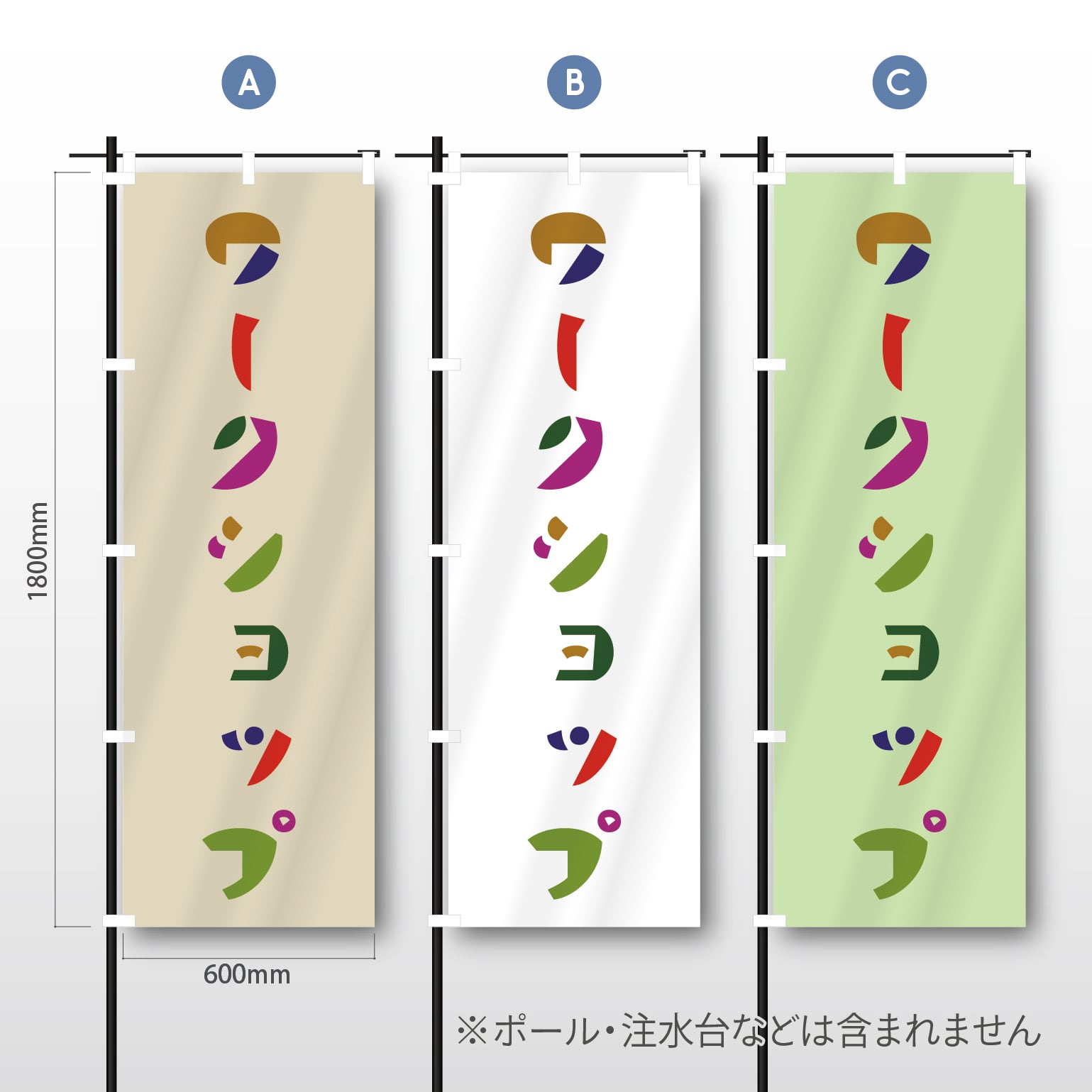 ワークショップ 文字のぼり のぼり旗 おしゃれ のぼり オリジナルデザイン 1枚から購入可能HATAYA-ハタヤ-おしゃれな のぼり旗 看板専門店。