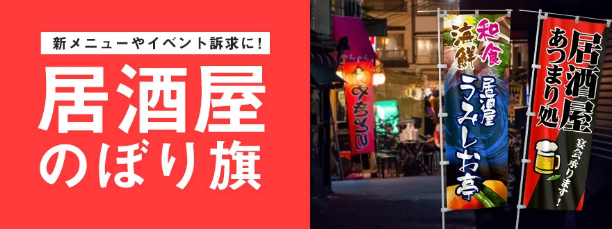 居酒屋のぼり旗オリジナル作成と印刷 のぼりモール。
