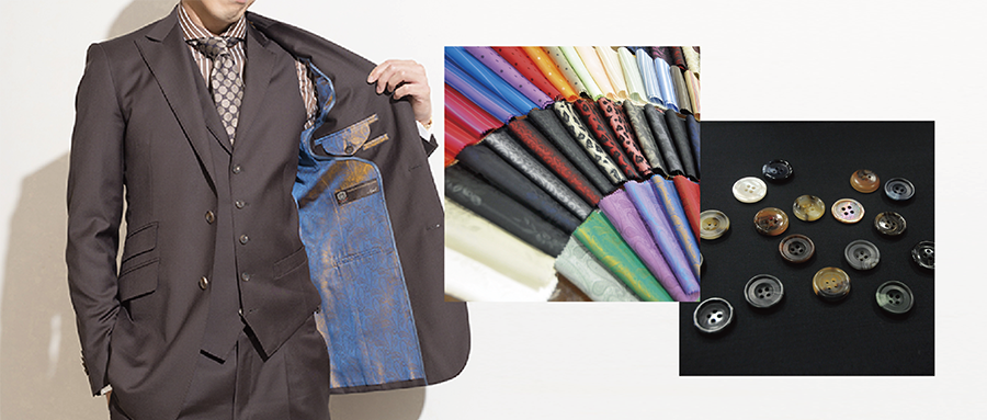 オーダースーツを楽しもう 裏地・ボタン・色糸サンプル BOOKオーダースーツのビッグヴィジョン。