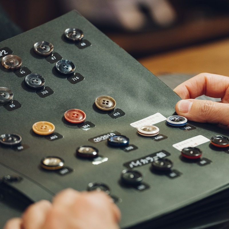 オーダースーツのボタン選びを楽しむ。岡山のオーダースーツ専門店 ロードハウス。