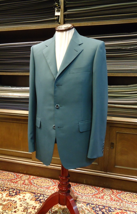 綺麗なグリーン色の3つボタンスーツ - ブログ大阪のオーダースーツ専門店テーラーキスモト。