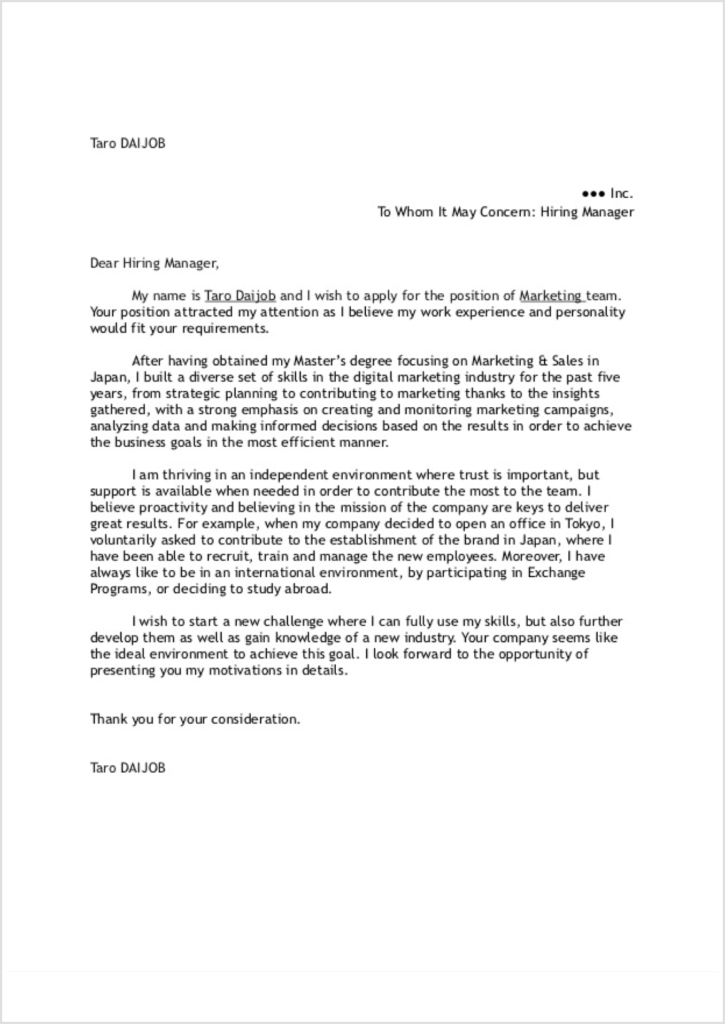 カバーレター cover letter とは?正しい書き方ガイド テンプレート付き転職ならdoda デューダ。