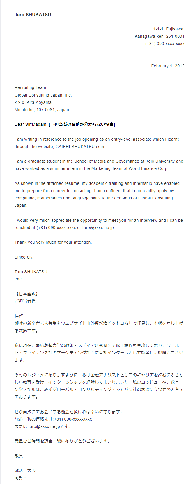カバーレター - Global Career Guide。