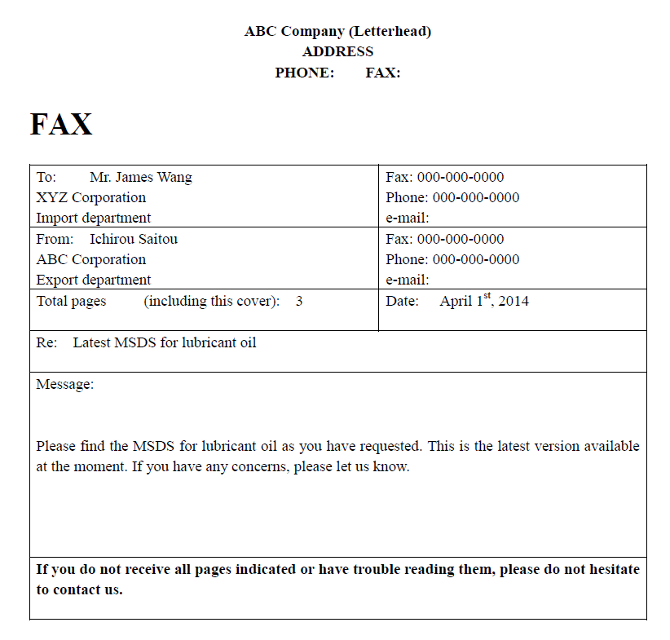 英語でのFAX送付状、カバーレターのテンプレート。