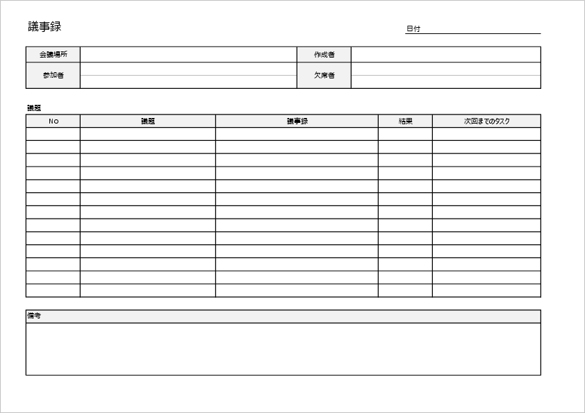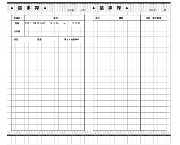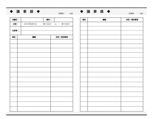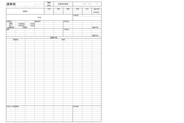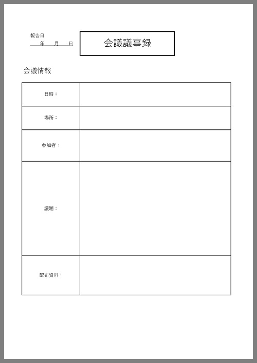 シンプルなデザインの議事録のテンプレート雛形無料イラスト素材素材ラボ。