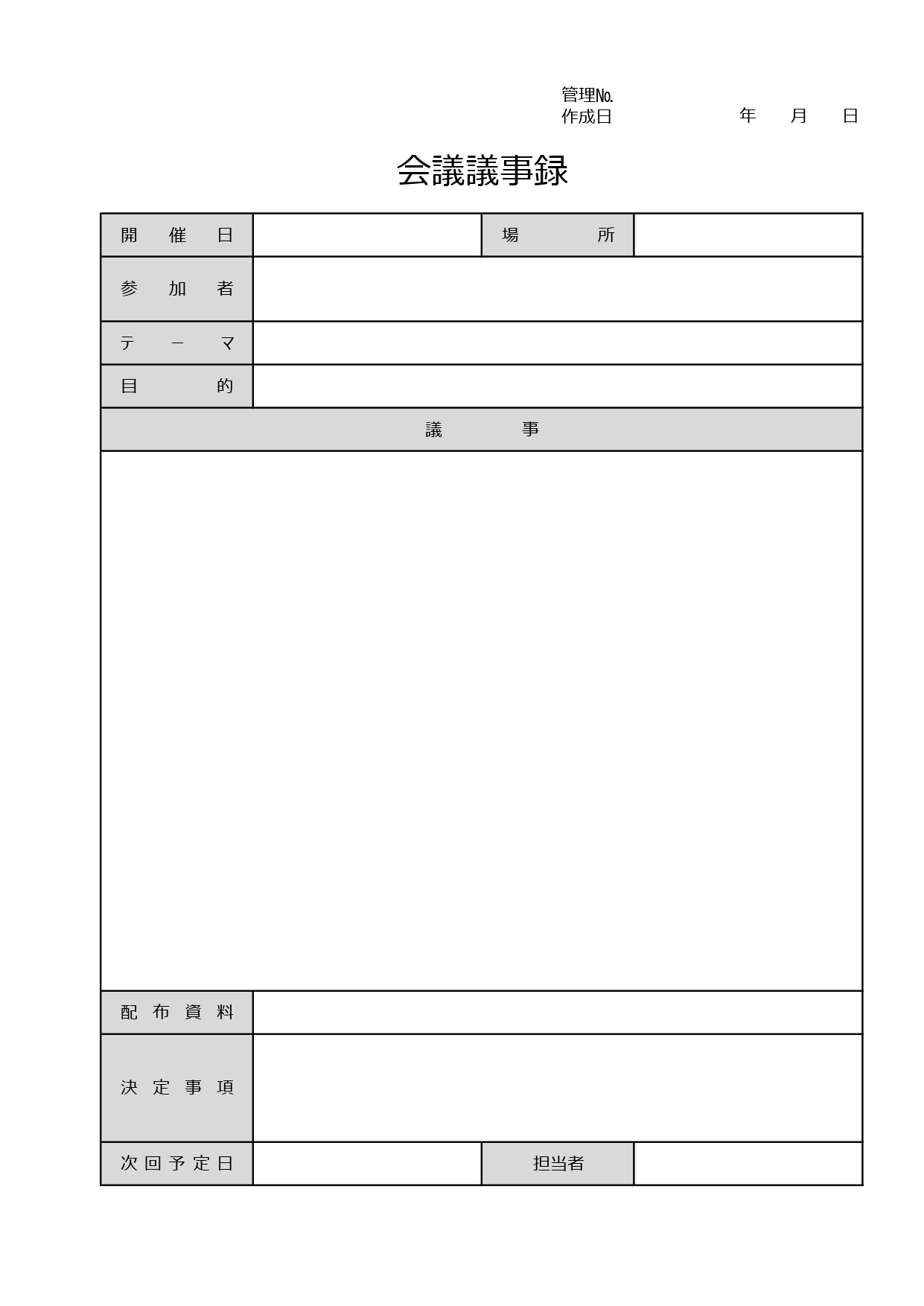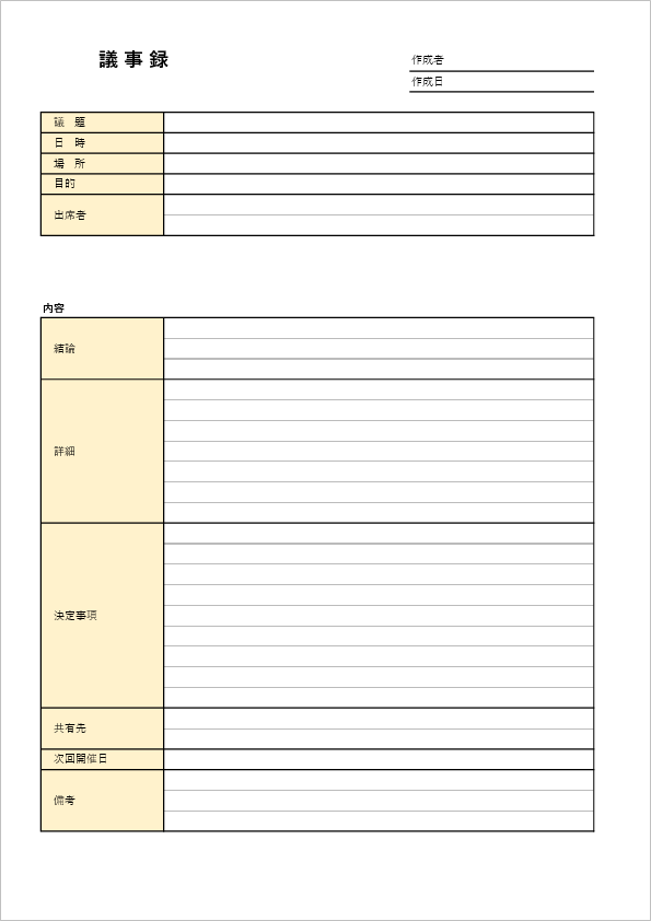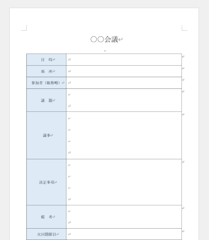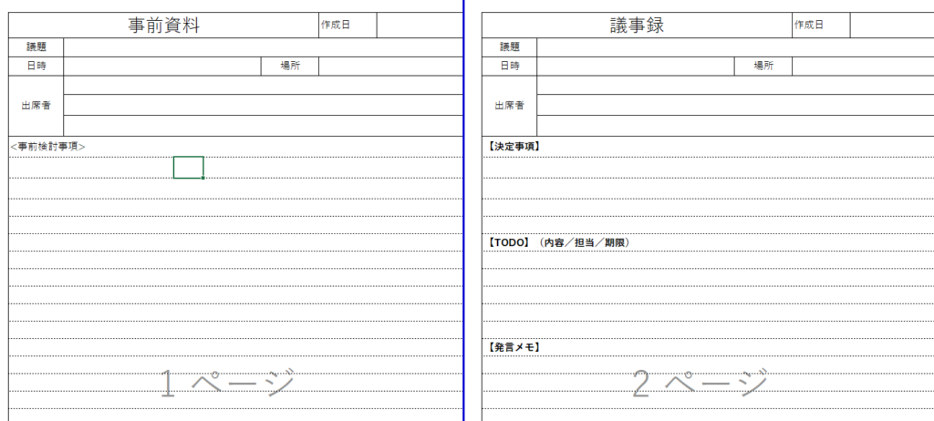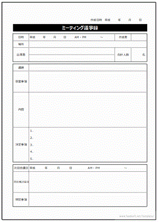 枠線が付いた会議議事録のエクセル・ワードのフォーマット📑無料ダウンロード!テンプレルン📑無料ダウンロード!テンプレルン。