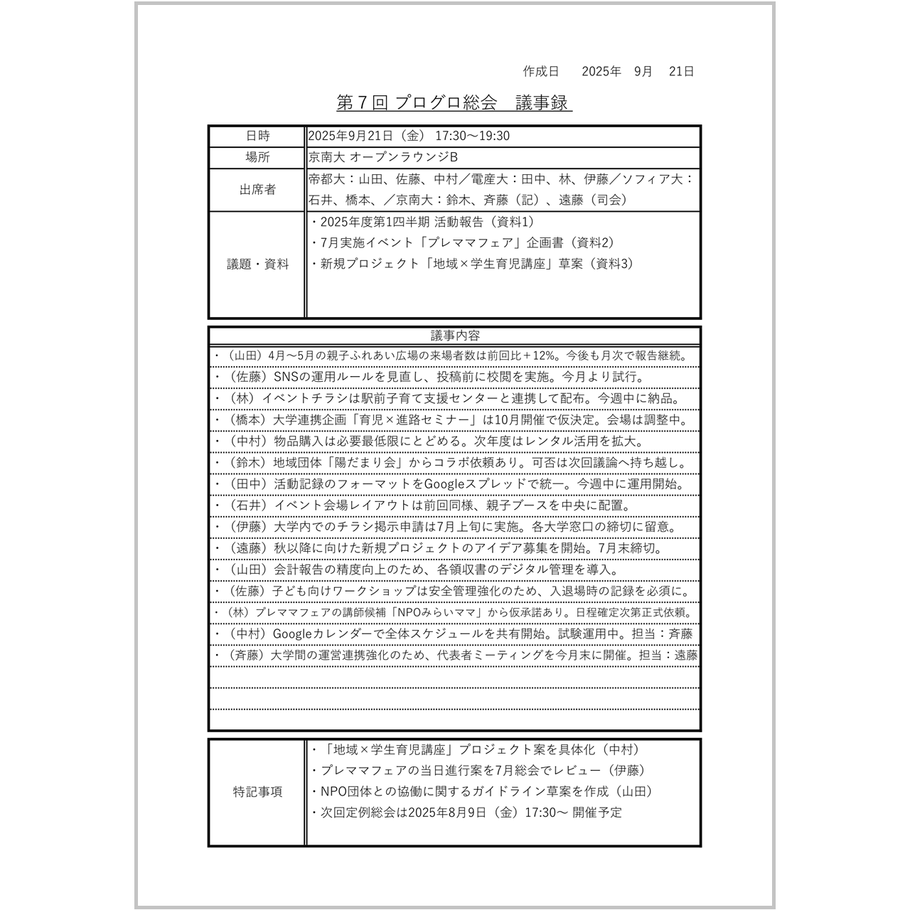 おすすめの打ち合わせ内容整理フォーマット - Genspark。