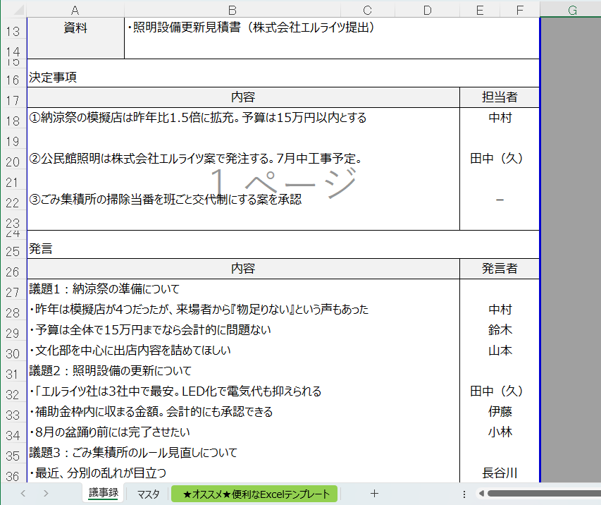 議事録フォーマット・エクセル📑無料ダウンロード!テンプレルン📑無料ダウンロード!テンプレルン。