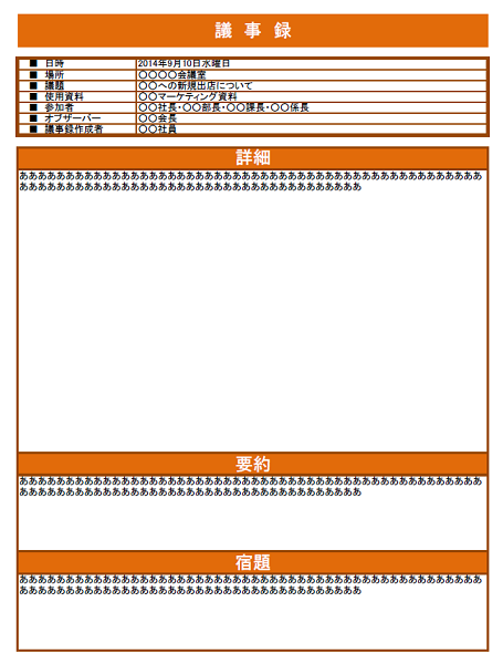 記入例!会議議事録「Excel・Word・PDF」議事内容の余白大き目で使いやすいシンプルな議事録となります。 会議中に。