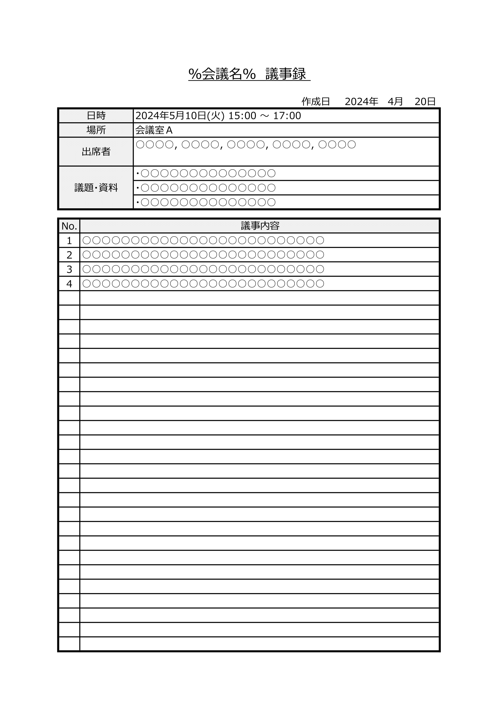 会議議事録職員会議・部会・学校- 無料テンプレート公開中 - 楽しもう Office。