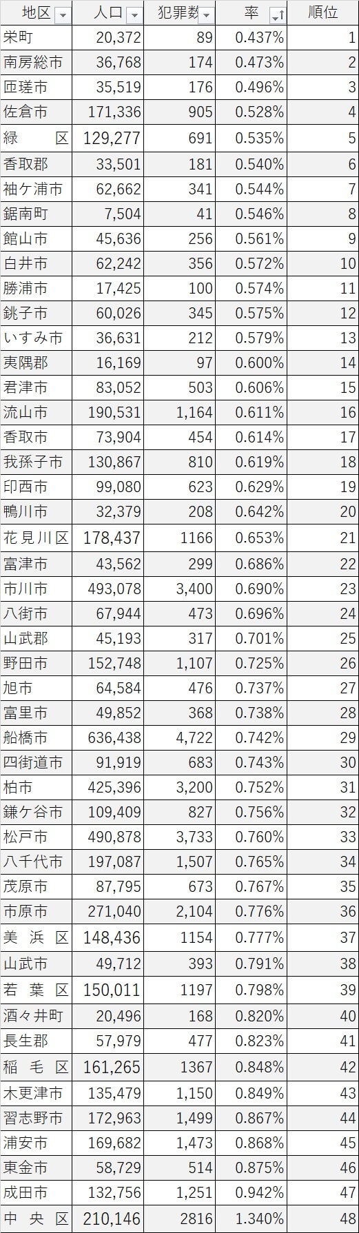 千葉県の治安ランキング! 犯罪が少なく安全に暮らせる市区町村はどこ? 2025年版 ダイヤモンド不動産研究所。