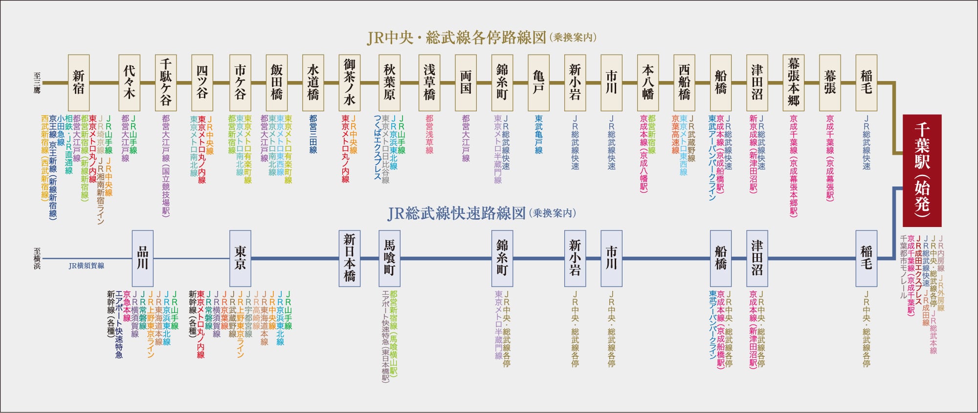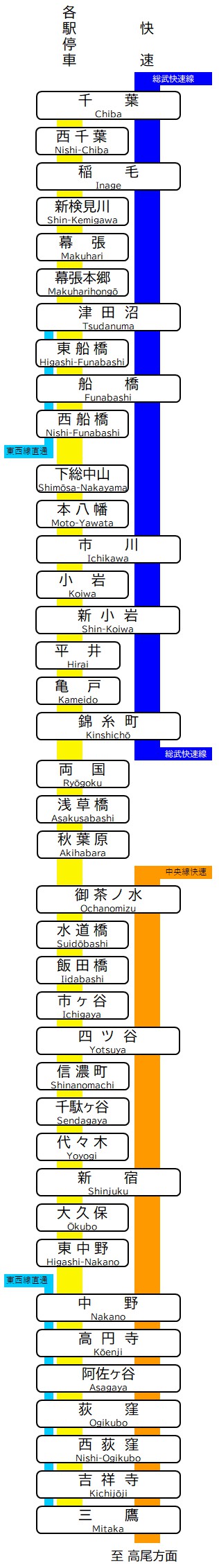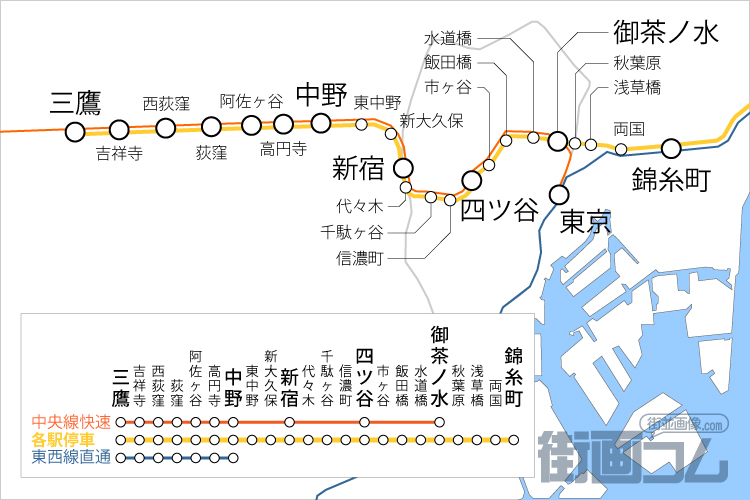 行き先が違う!総武線快速・中央総武線の停車駅と路線図まとめ 街画コム。