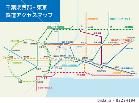 千葉県西部-東京の鉄道路線図のイラスト素材82234194- PIXTA。
