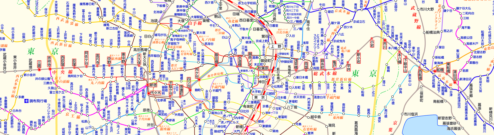 東京の鉄道路線図・東京メトロと都営地下鉄の路線図7mansion。