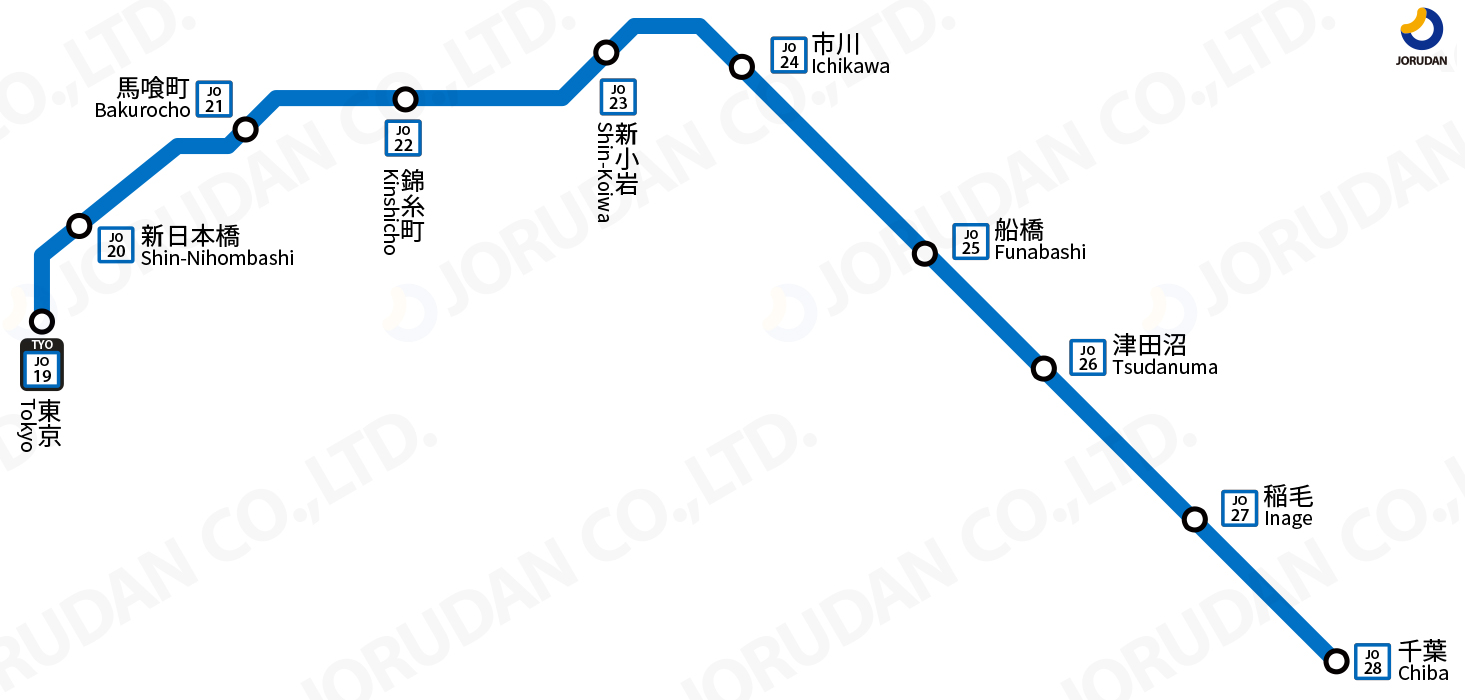 JR総武線快速 千葉〜東京緯度経度・地点一覧 : 路線図。