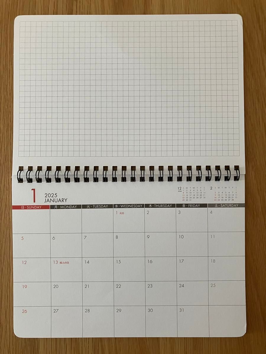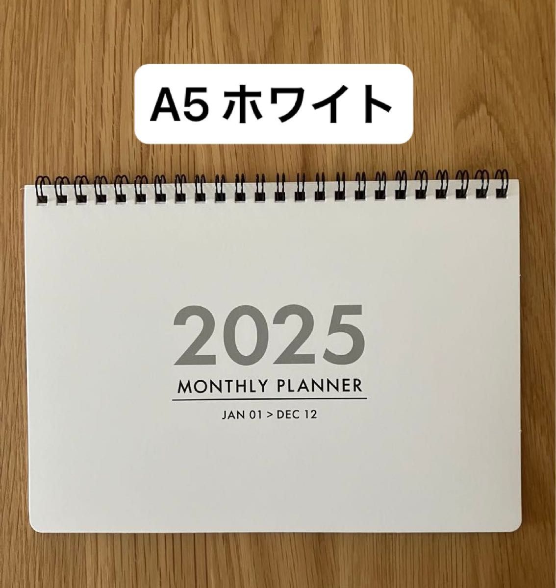 2025 スケジュールWリングカレンダーA5 ホワイトダイソー 卓上カレンダーノート。