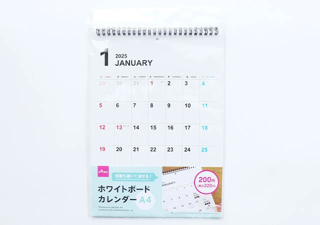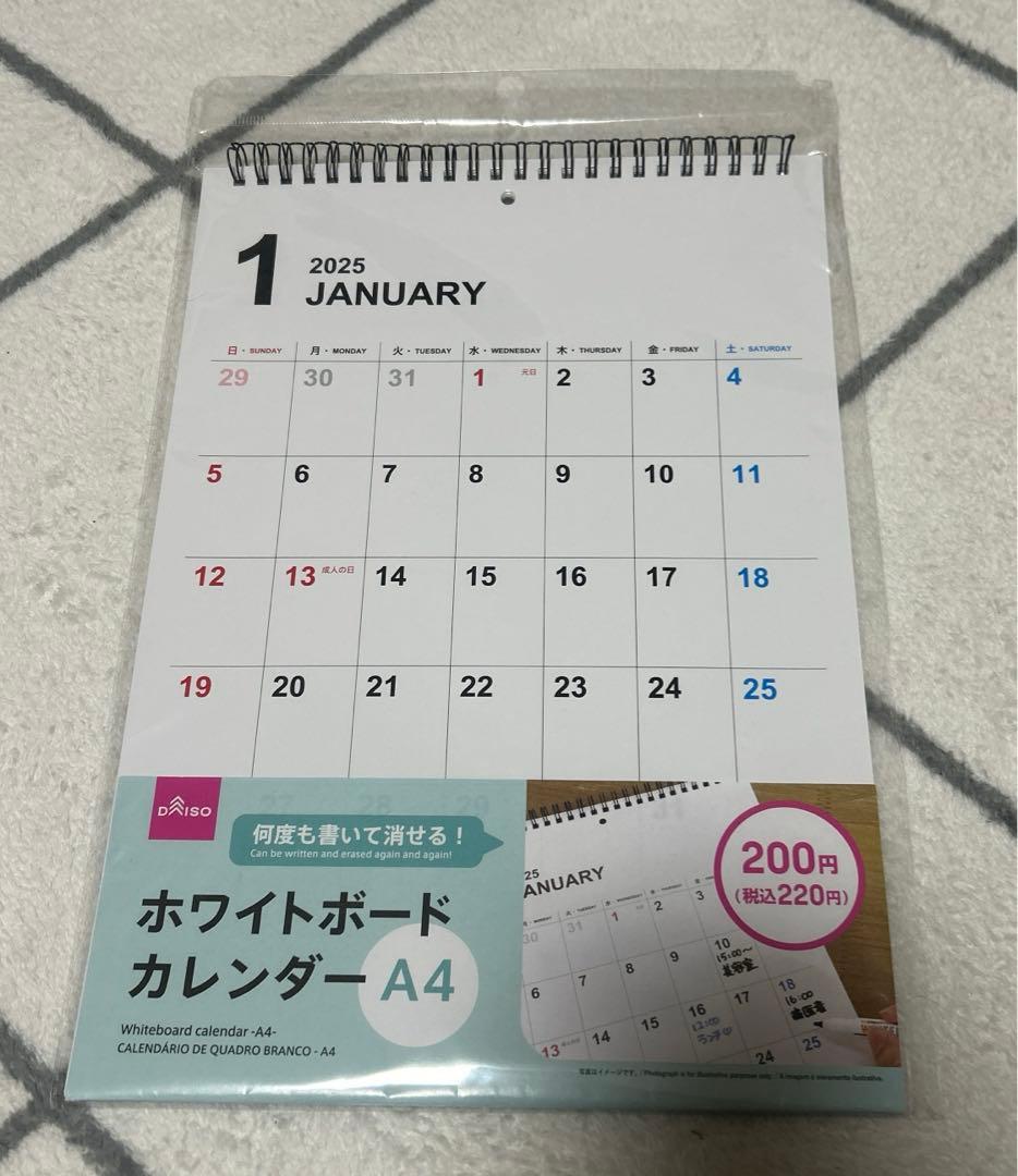 DAISO - 何度も書いて消せる ホワイトボードカレンダー A4 2025年 壁掛けカレンダーの通販 by momooo's shopダイソー ならラクマ。