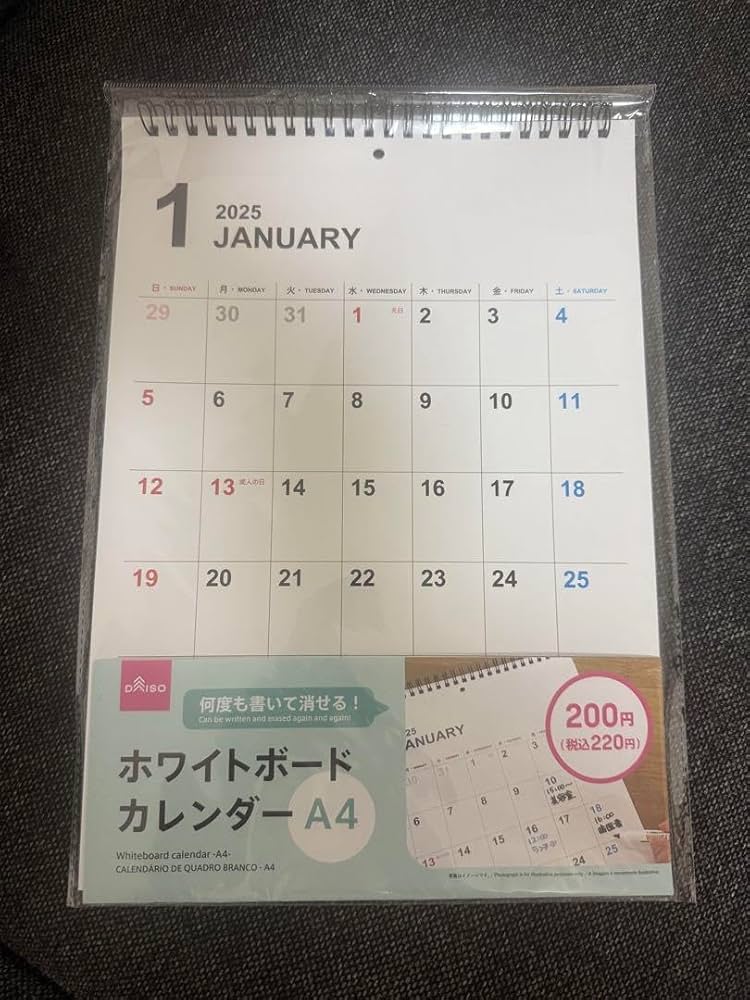 ダイソー カレンダー 2025ホワイトボードTikTok。