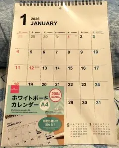 何度も書いて消せるホワイトボードカレンダーA4 2025年壁掛けカレンダーフリマアプリ ラクマ。