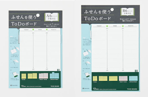 使い方は自由自在、『フリースケジュール付箋紙』 - 自分で日付を書き込める、フリータイプのスケジュールを付箋にしました。ウィークリーとマンスリーの2種類を用意しています。 ノートや手帳に貼るのはもちろん、パソコンなど目につきやすい場所に貼って使うのも。