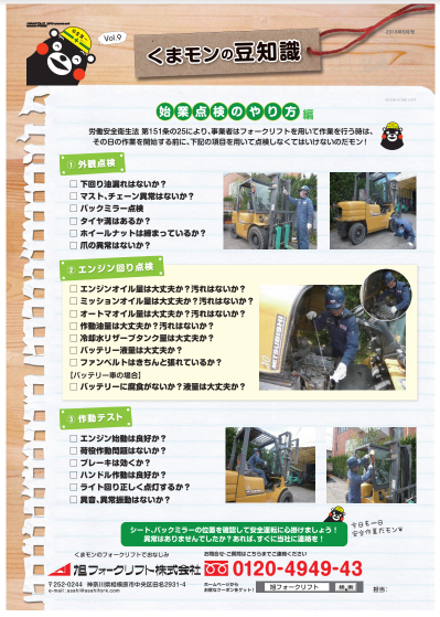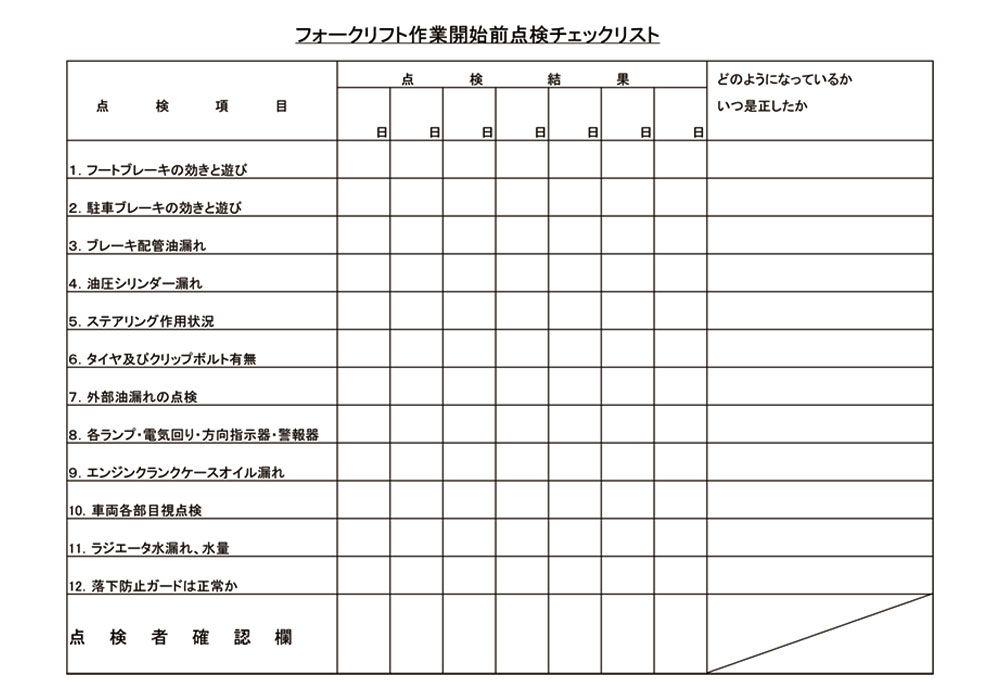 始業前点検 作業開始前点検 について - 中古フォークリフト販売・レンタルフォークリフトなら 神奈川・東京・埼玉旭フォークリフト。