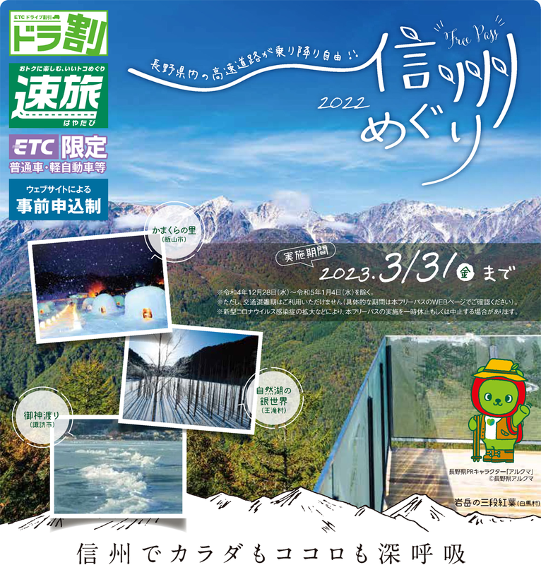 長野県内の高速道路が乗り降り自由「信州めぐりフリーパス2022」4月1日開始 首都圏出発 名古屋出発 周遊の3プランを用意 - トラベル Watch。