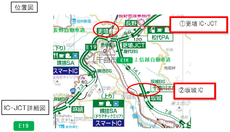 E19 長野自動車道 下り線 麻績IC⇒更埴IC トンネルのリニューアル工事による昼夜連続車線規制のお知らせNEXCO東日本。