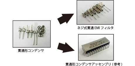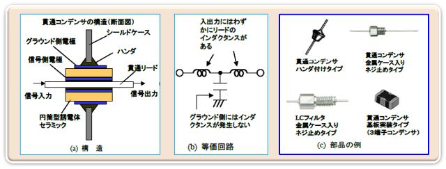 3端子コンデンサ貫通接続によるノイズ対策村田製作所 技術記事。