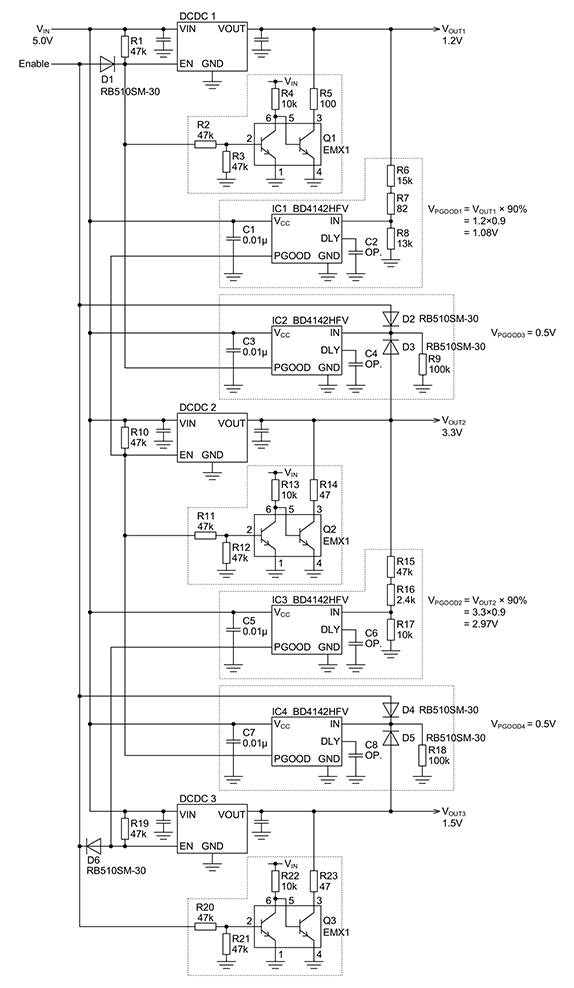 電源シーケンス仕様①:回路と定数計算の例汎用電源ICで電源シーケンスを実現する回路TechWeb。