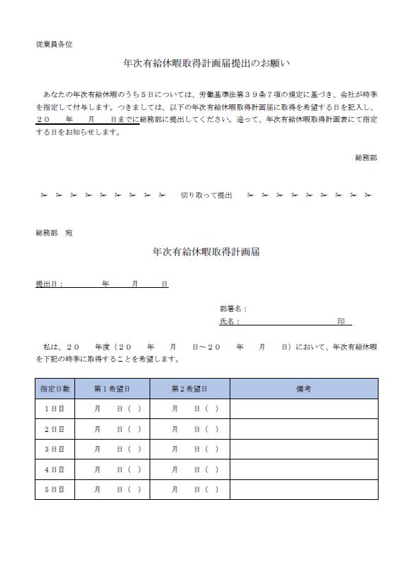 年次有給休暇取得計画届提出のお願い労務ドットコム。