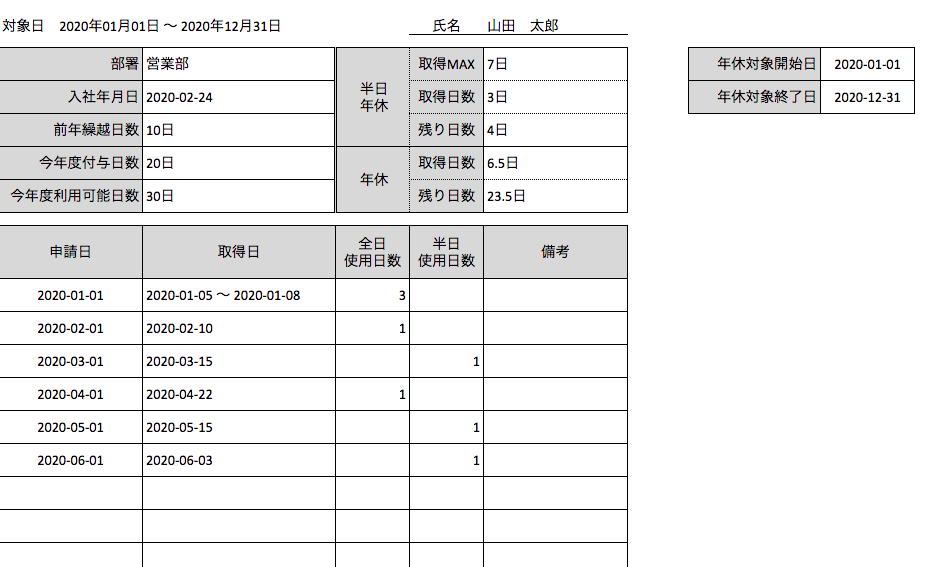 有給休暇管理表 - 無料テンプレート公開中 - 楽しもう Office。