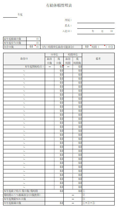 有給休暇管理表」のテンプレート 書式 無料ダウンロードビジネスフォーマット 雛形 のテンプレートBANK。