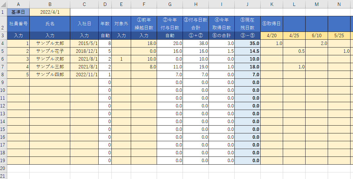 エクセル「年次有給休暇管理簿」テンプレートを無料でダウンロード📑無料ダウンロード!テンプレルン📑無料ダウンロード!テンプレルン。