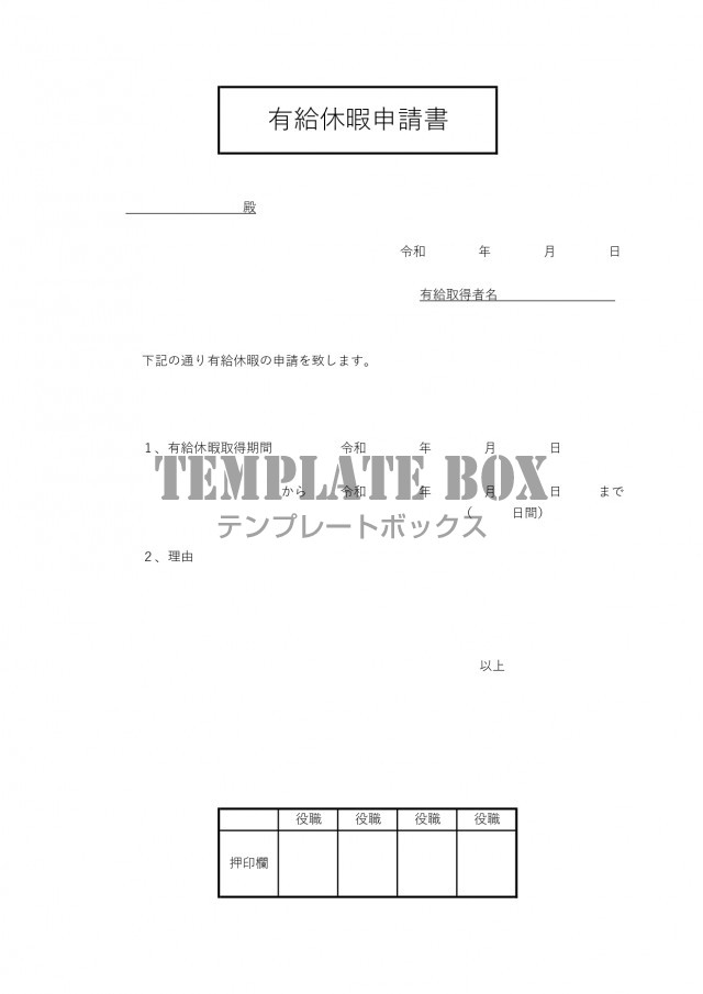 PDF手書き対応!有給休暇申請書「Excel・Word」シンプルな書式で書き方が簡単なフリー素材をダウンロード無料テンプレートTemplateBox。