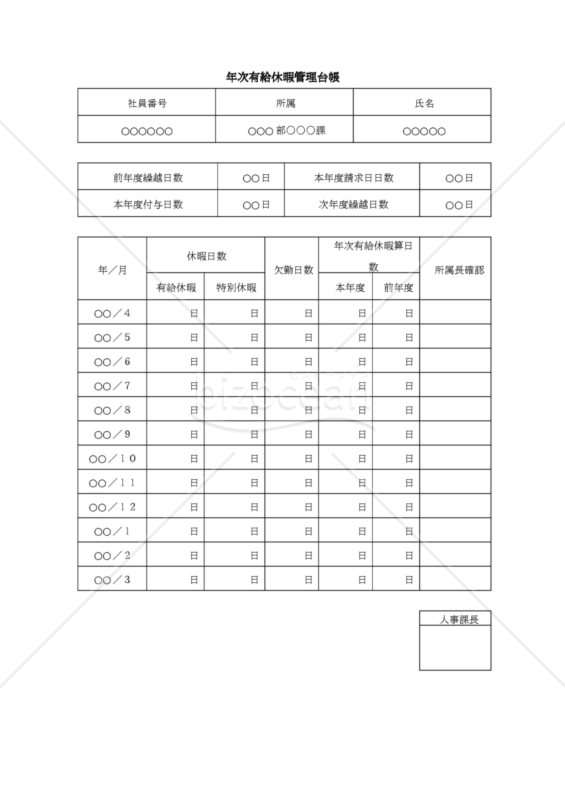 年次 有給休暇申請書 シンプル版 ・Excel 見本付き bizocean ビズオーシャン。