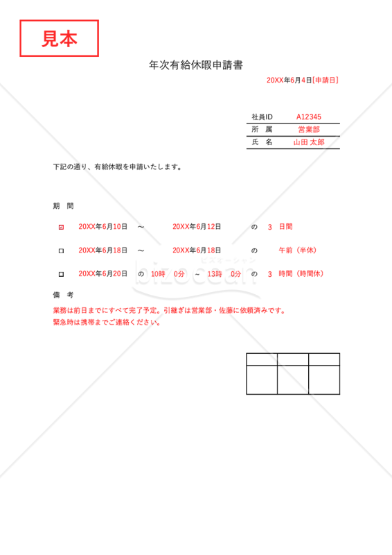 書き方が簡単!見本としても使える有給休暇申請書のテンプレート:イラスト無料。