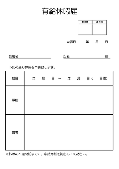 すぐに使える有給休暇届・申請書テンプレート Excel・Word・PDF 無料・登録不要ビズ研。