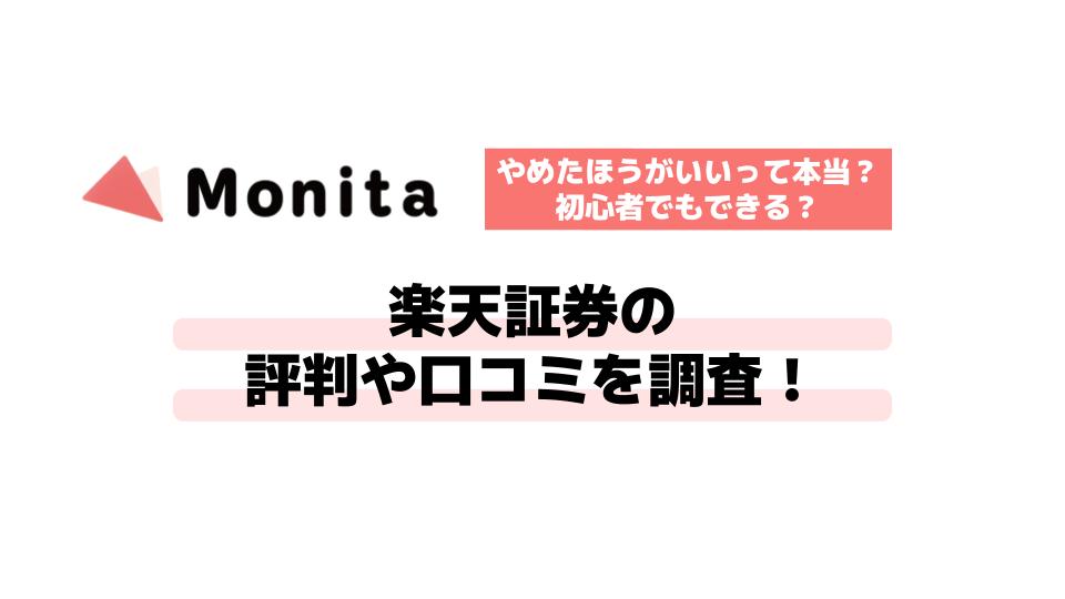 楽天証券の評判や口コミを調査!やめたほうがいいって本当?初心者でもできる?手数料やメリット・デメリットを解説Monita モニタ。
