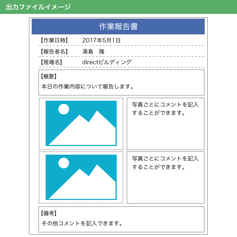 写真報告書ボットfor現場 Excel- direct bot RENTAL。