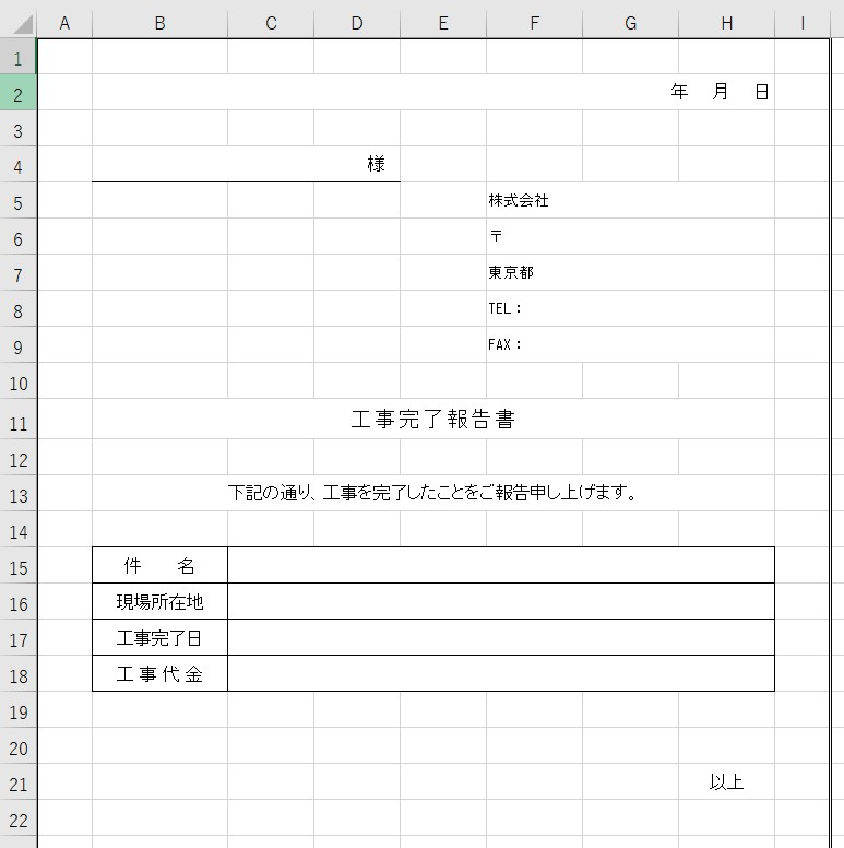 工事完了報告書:Excelで作成 - テンプレートの無料ダウンロード。