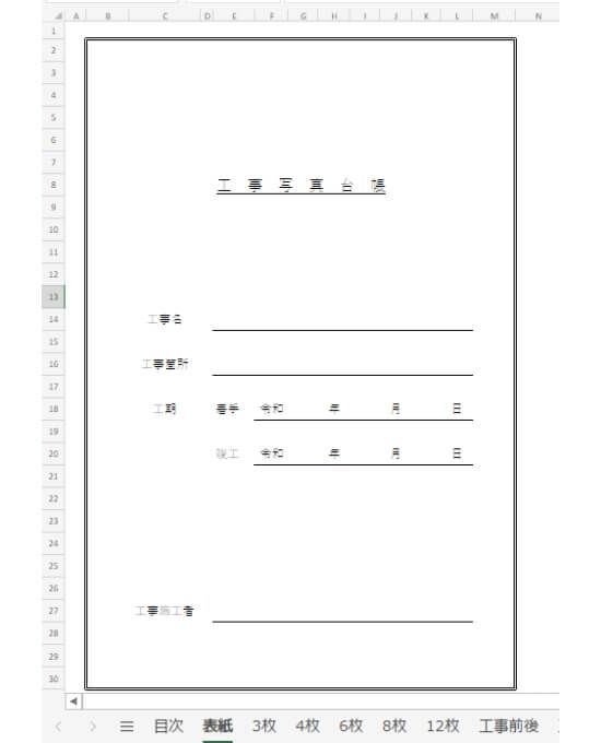 工事写真台帳エクセルテンプレート 無料ダウンロード - 悪魔のエクセルテンプレート。