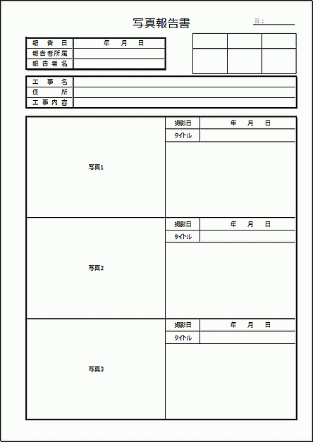 工事写真報告書 写真3点・ヘッダあり 」のテンプレート 書式 無料ダウンロードビジネスフォーマット 雛形 のテンプレートBANK。