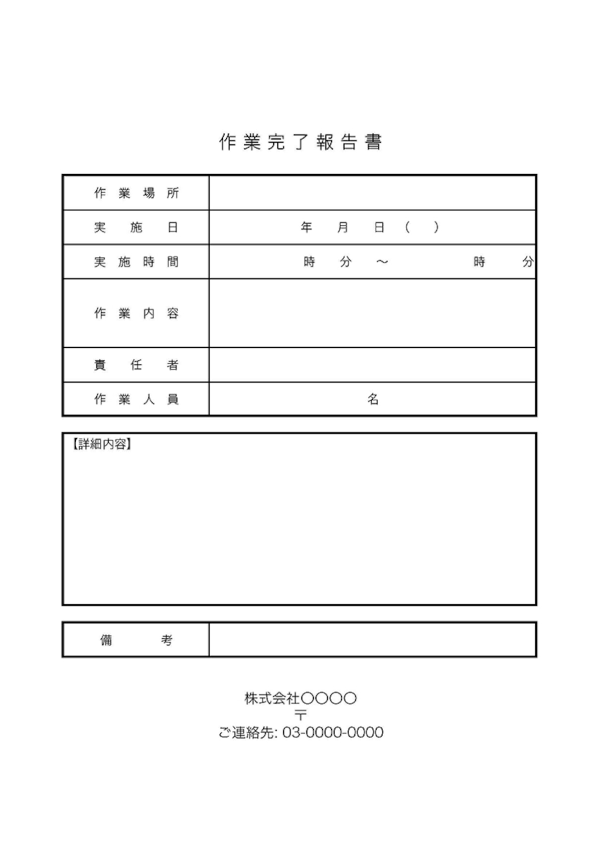 作業場所や基本内容の項目のシンプルな工事完了報告書「Excel・Wordで作成・PDFで手書き」の無料テンプレート王の嗜み。
