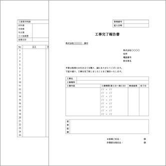 工事完了報告書Excel作成の2書式の雛形を無料ダウンロード。
