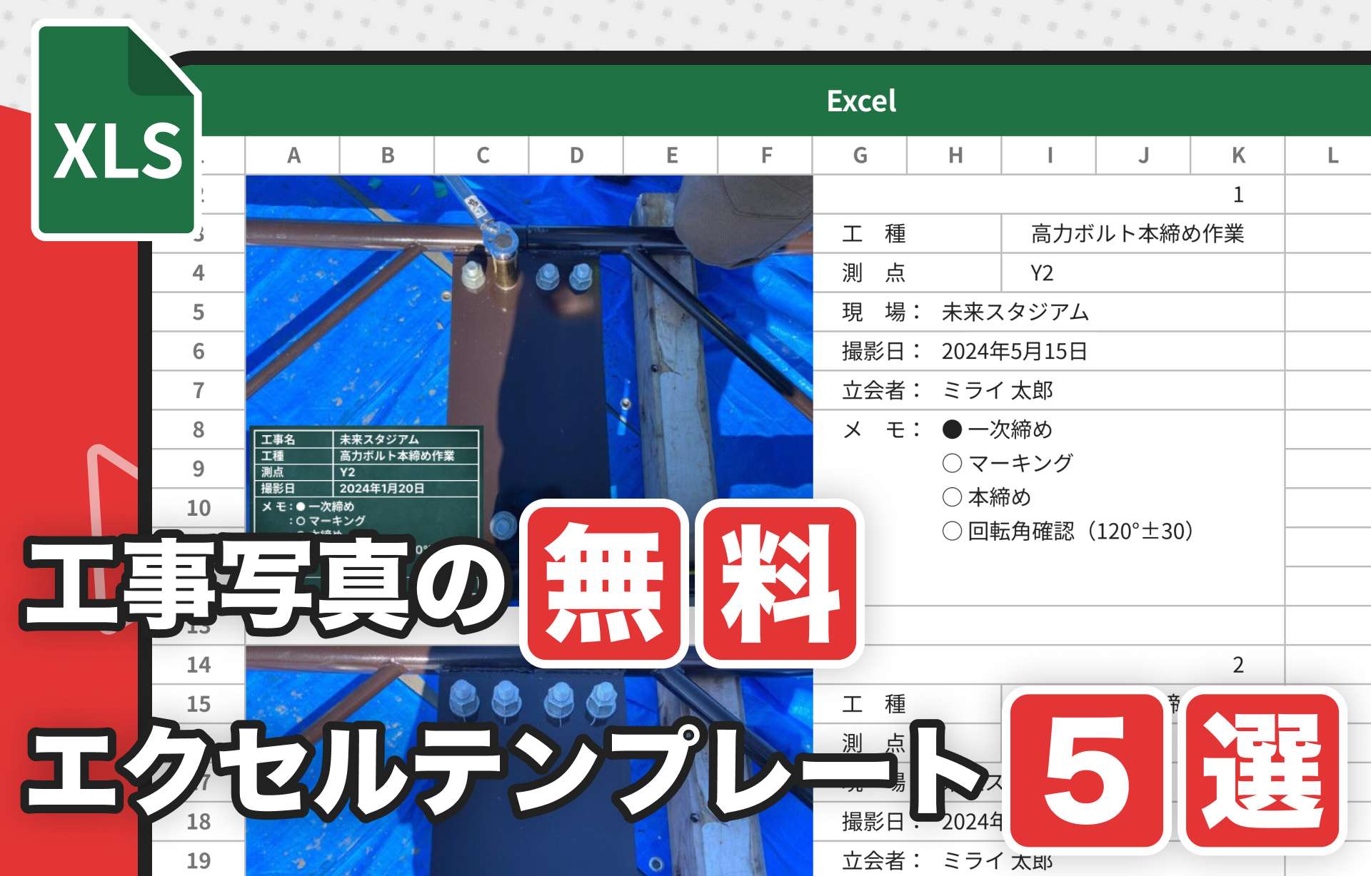 工事写真台帳の無料エクセルテンプレート 5選 アプリで自作するメリット・デメリットとは? - 工事写真アプリ「ミライ工事」。